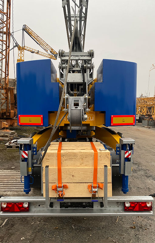 Durch die per Funk lenkbare Achse ist das Einrangieren selbst in die engste Baustelle kein Problem.